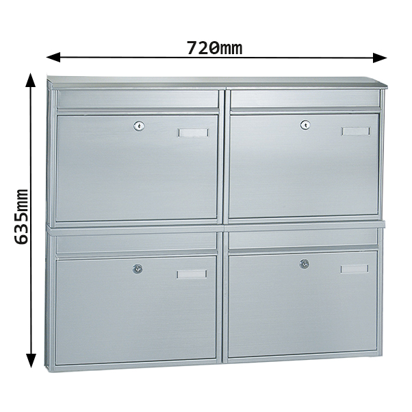 Hlavní výhody: Cylindrické zámky se 2 klíči Přední vhod pro poštu Odolnost proti povětrnostním vlivům a korozi Jmenovky Bez stojanu Celkově 4 poštovní schránky vyrobeny z kvalitní nerezové oceli spolehlivě doleva povětrnostním podmínkám a možné korozi. Každá poštovní schránka disponuje cylindrickým zámkem spolu s 2 klíči. Přední vhod je chráněn krytkou, aby dovnitř nevnikala dešťová voda a jiné nečistoty, které by mohly vaši poštu znehodnotit. Každá schránka má vlastní jmenovku. Poštu po doručení pohodlně vyberete přes přední dvířka. Upozorňujeme, že poštovní schránky jsou dodávány bez stojanu, který lze dokoupit samostatně. Schránky mají připraveny otvory pro upevnění do stojanu. Materiál k upevnění je součástí balení.