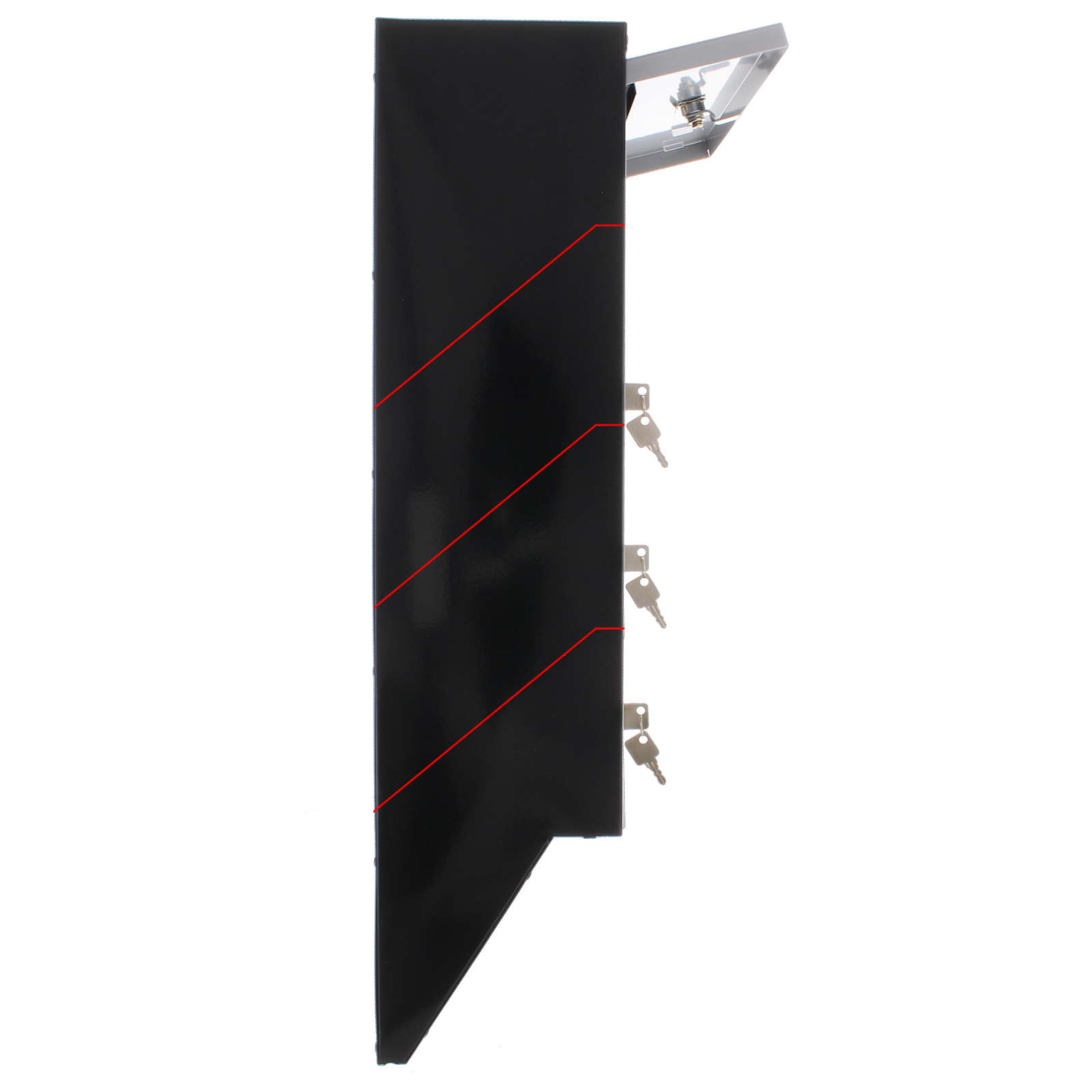 Hlavní přednosti jsou především Cylindrický zámek s 2 klíči pro každou složku Celkově 4 složky Jmenovky Kvalitní ocelové provedení .