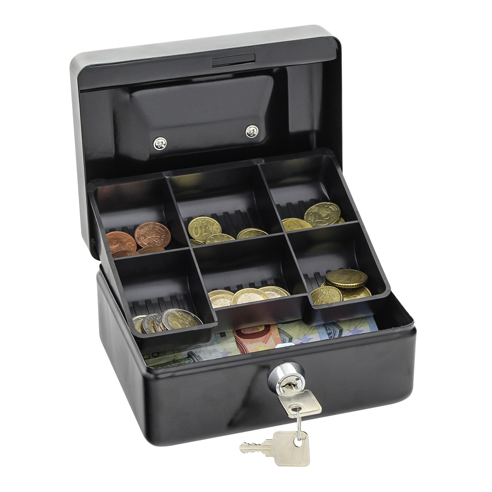 Hlavní výhody: Cylindrický zámek s 2 klíči Vhodná pro mince i bankovky Kvalitní ocelový plech a zapuštěná rukojeť Černá pokladnička značky Rottner s cylindrickým zámkem disponuje dostatkem prostoru pro mince i bankovky všech hodnot. Rukojeť s povrchovou úpravou odolá korozi a lze ji sklopit, takže nezabírá místo. Spolehlivý zámek dodávaný spolu se 2 klíči zabrání nechtěnému otevření. Kasičku vám doručíme zabalenou ve fólii.