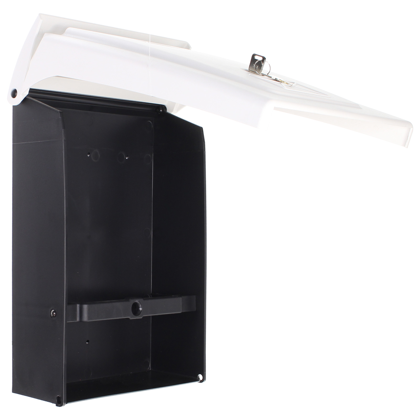 Hlavní výhody: Cylindrický zámek se 2 klíči Horní vhod pro poštu max. A4 Bez jmenovky Plastové provedení Plastová poštovní schránka Posta v dvojitém černobílém provedení. Nabízí klasický cylindrický zámek s 2 klíči. Pošta se vhazuje přes horní vhod, který je chráněn plastovou stříškou. Zabrání se tak vnikání dešťové vody a nečistot dovnitř schránky. Do schránky je možné vhodit poštu do velikosti maximálně A4. Poštovní schránka Posta nemá jmenovku a je možné ji upevnit pomocí přiloženého materiálu na upevnění.