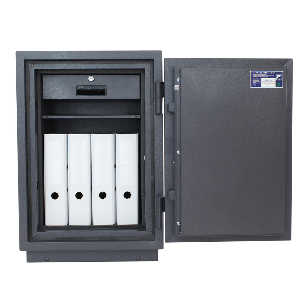 Hlavní přednosti jsou především Elektronický zámek a certifikát LFS 60 P Ohnivzdornost po dobu 60 minut pro papír Vnitřní schránka Polička uvnitř .